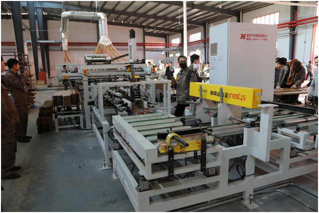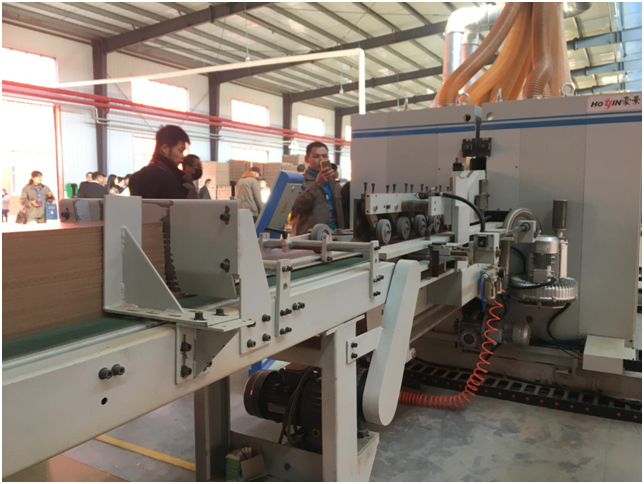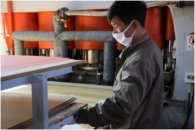 熱壓區(qū):構(gòu)成木地板的各層材料在這里熱壓成型